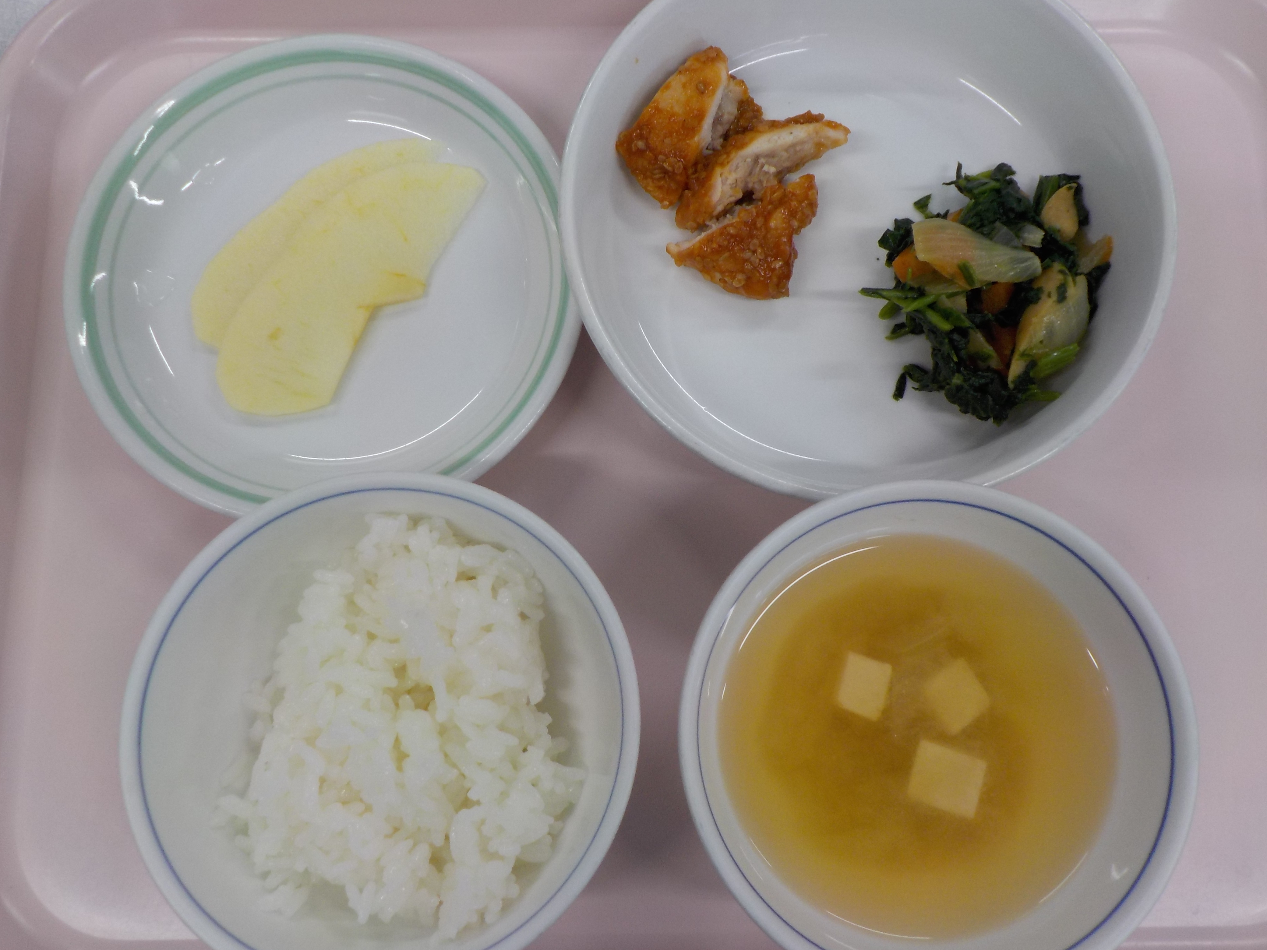 ・ご飯・ゴマチキン・野菜炒め・味噌汁・りんご