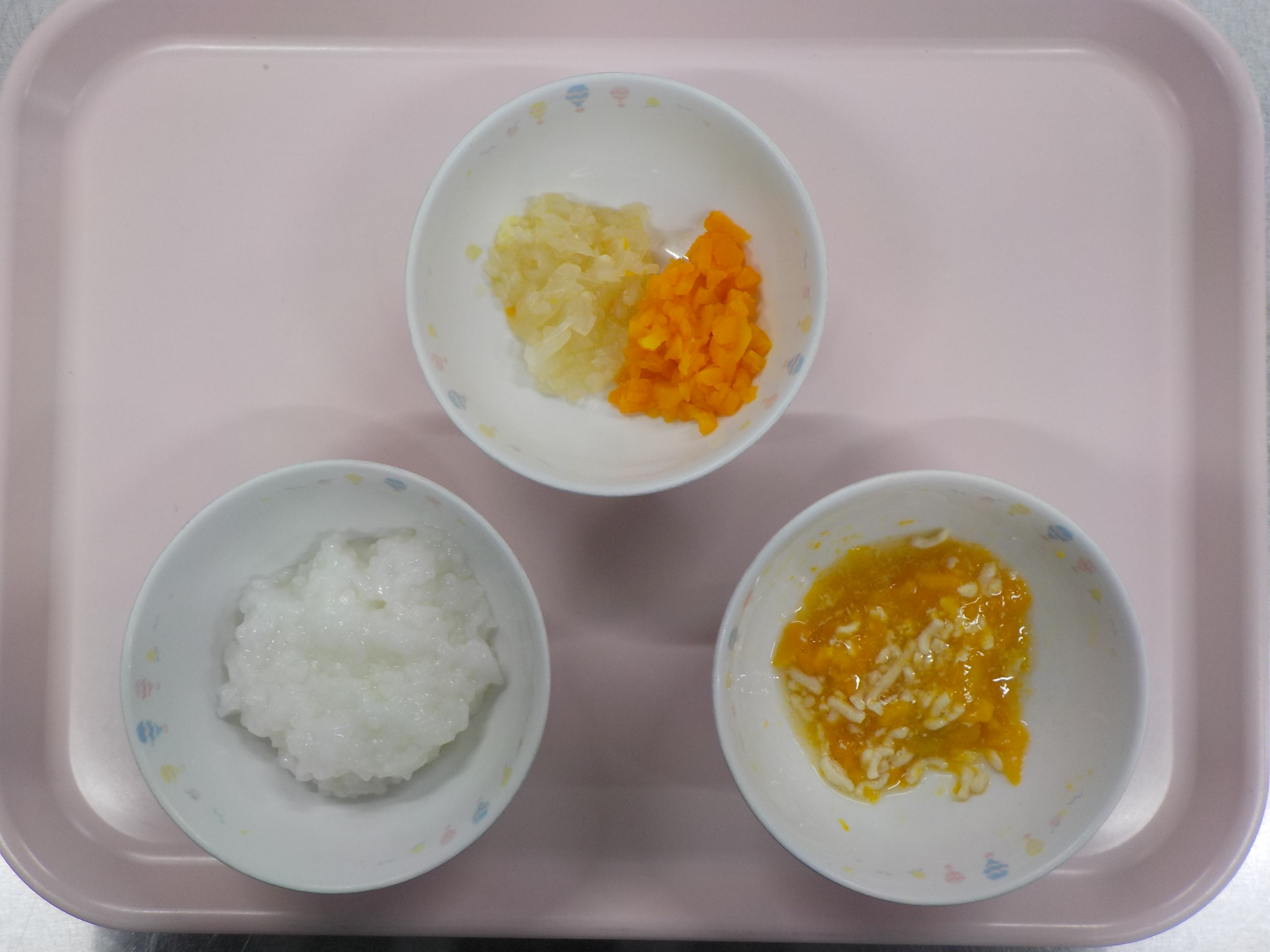 ・おかゆ・南瓜のそぼろ煮・人参と玉ねぎ煮