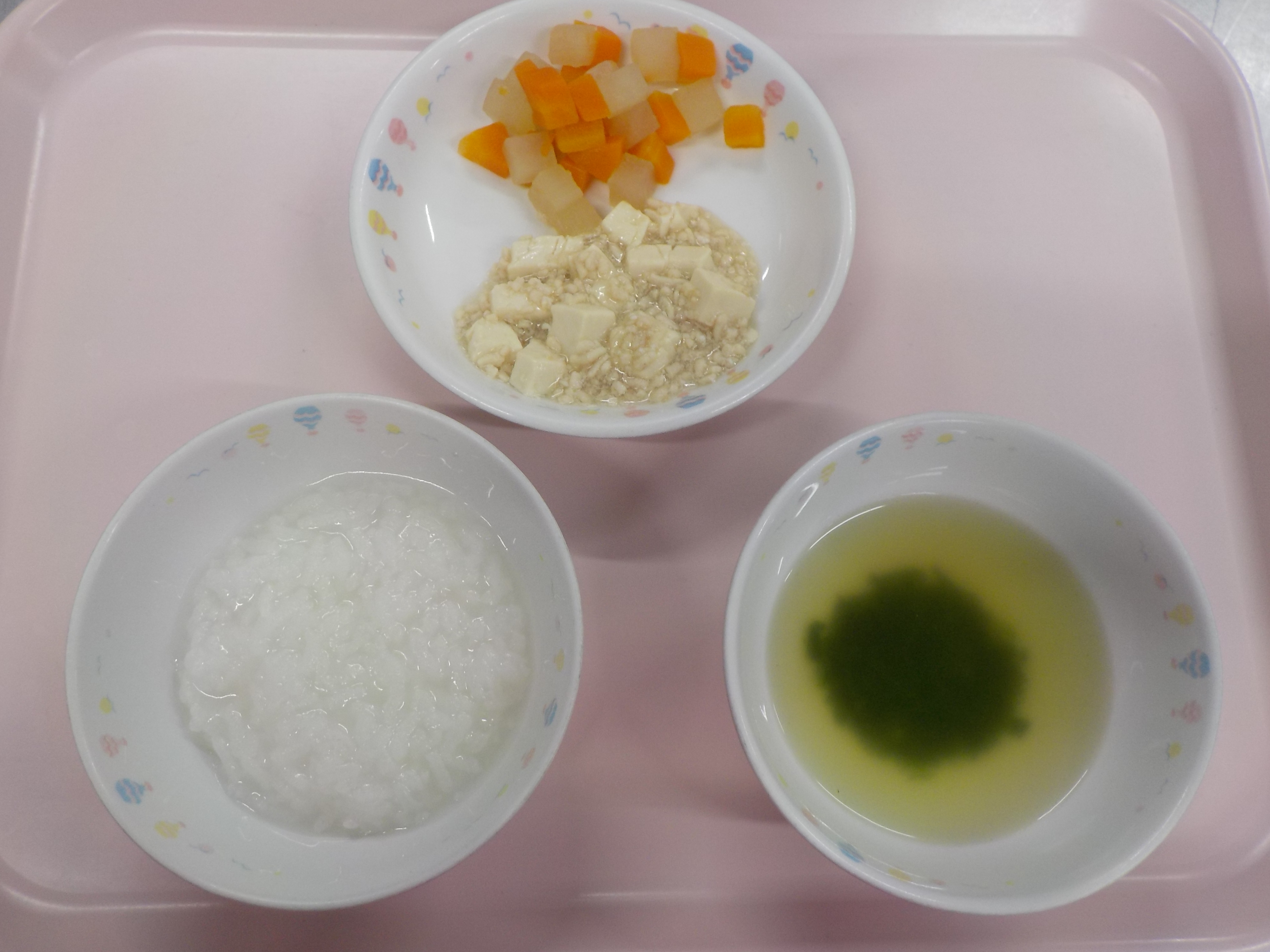 ・おかゆ・豆腐のそぼろ煮・人参と大根煮・小松菜スープ