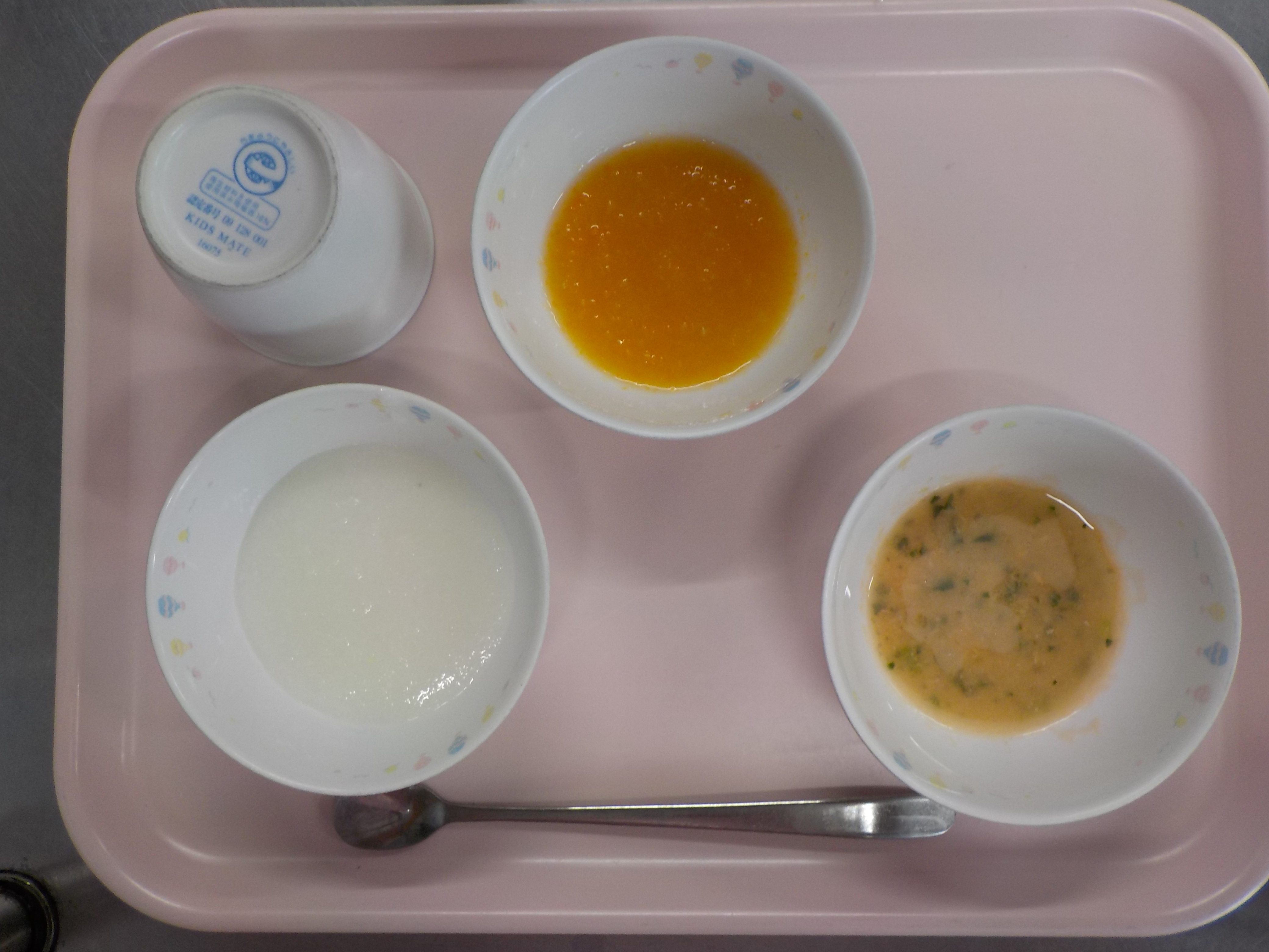 ・つぶしがゆ・鮭と小松菜煮・人参とさつま芋煮
