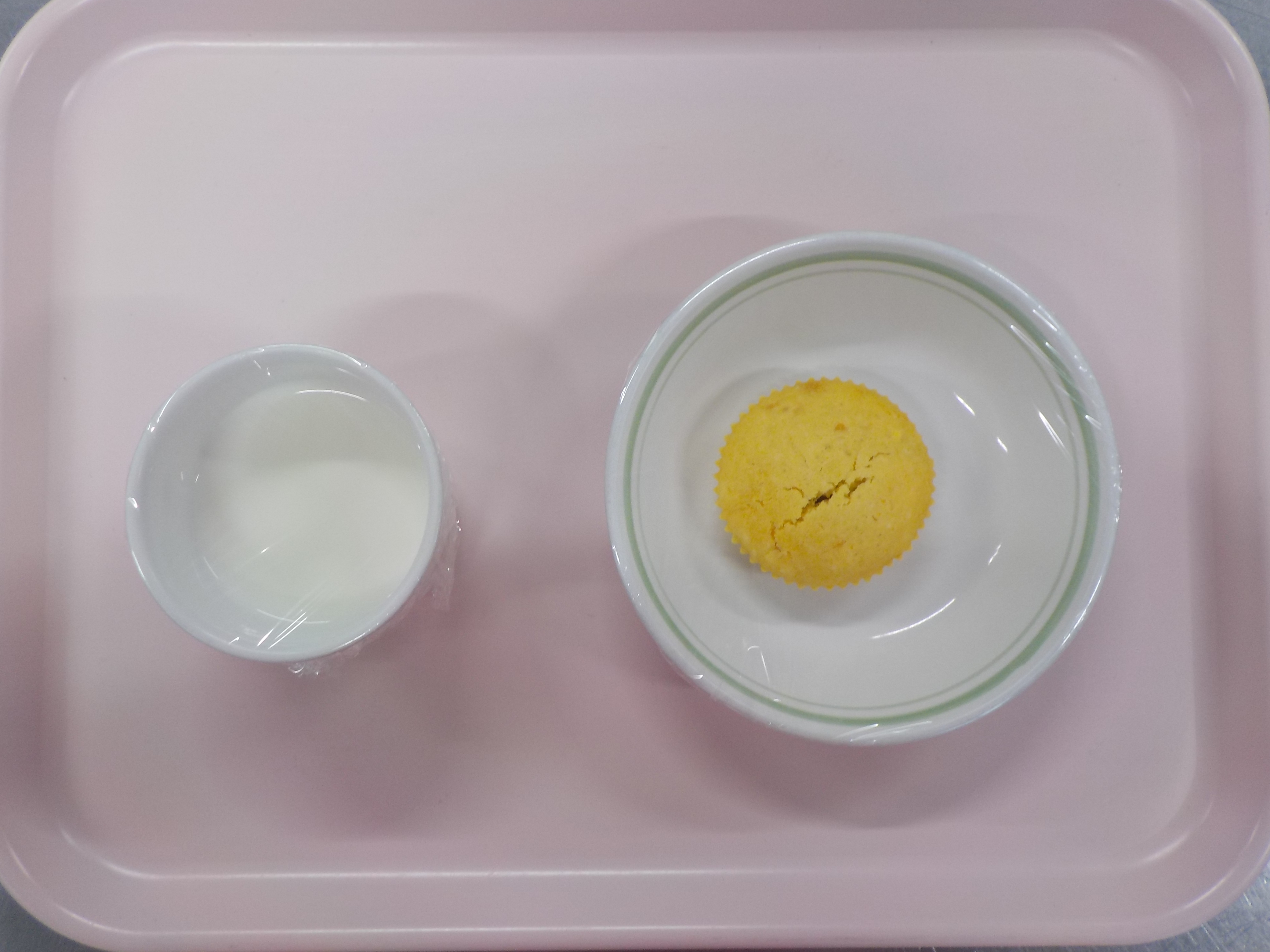 ・ご飯・鮭のカレームニエル・コーンサラダ・スープ・オレンジ