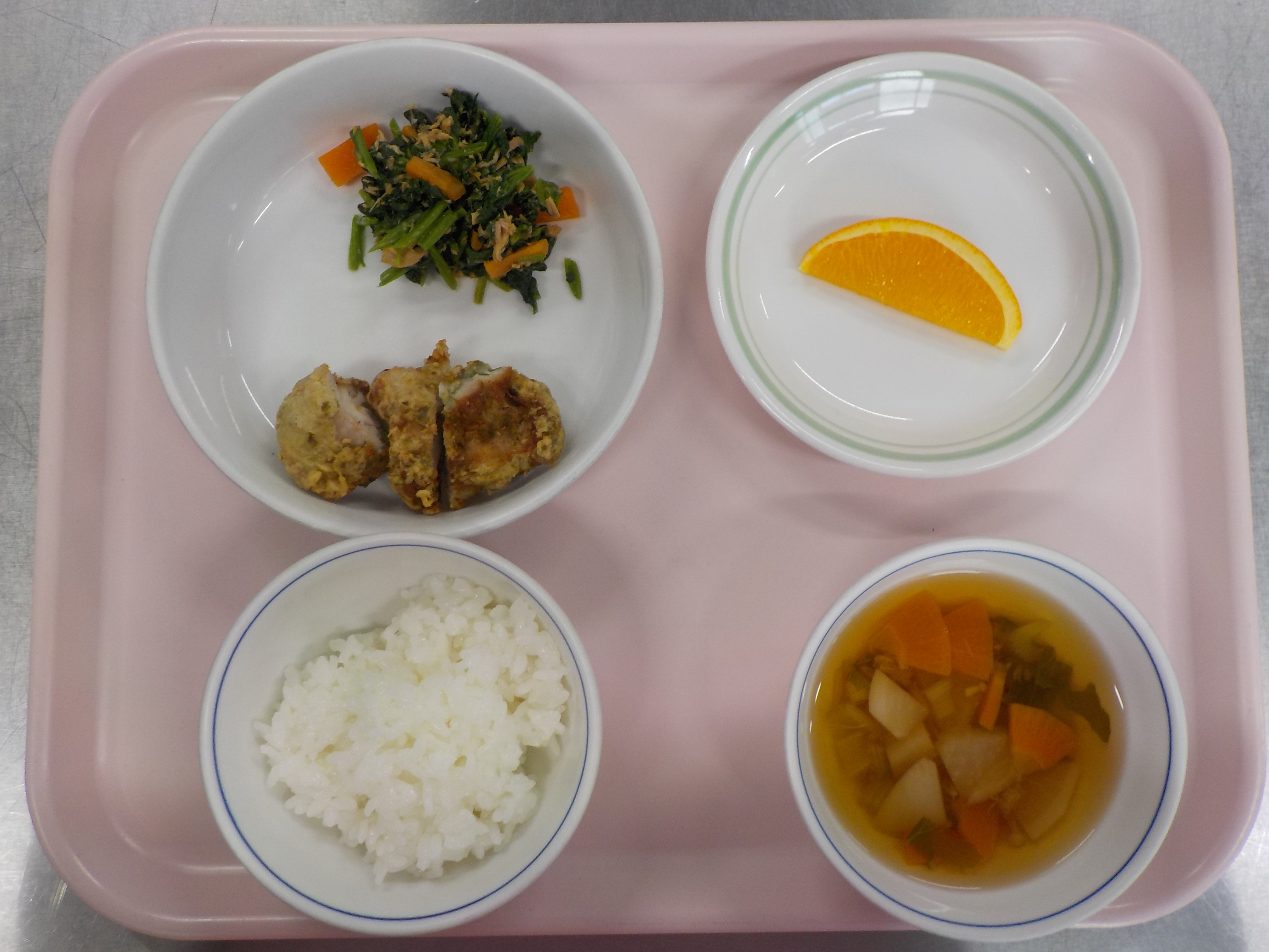 ・ご飯・のり塩唐揚げ・和風サラダ・すまし汁・オレンジ