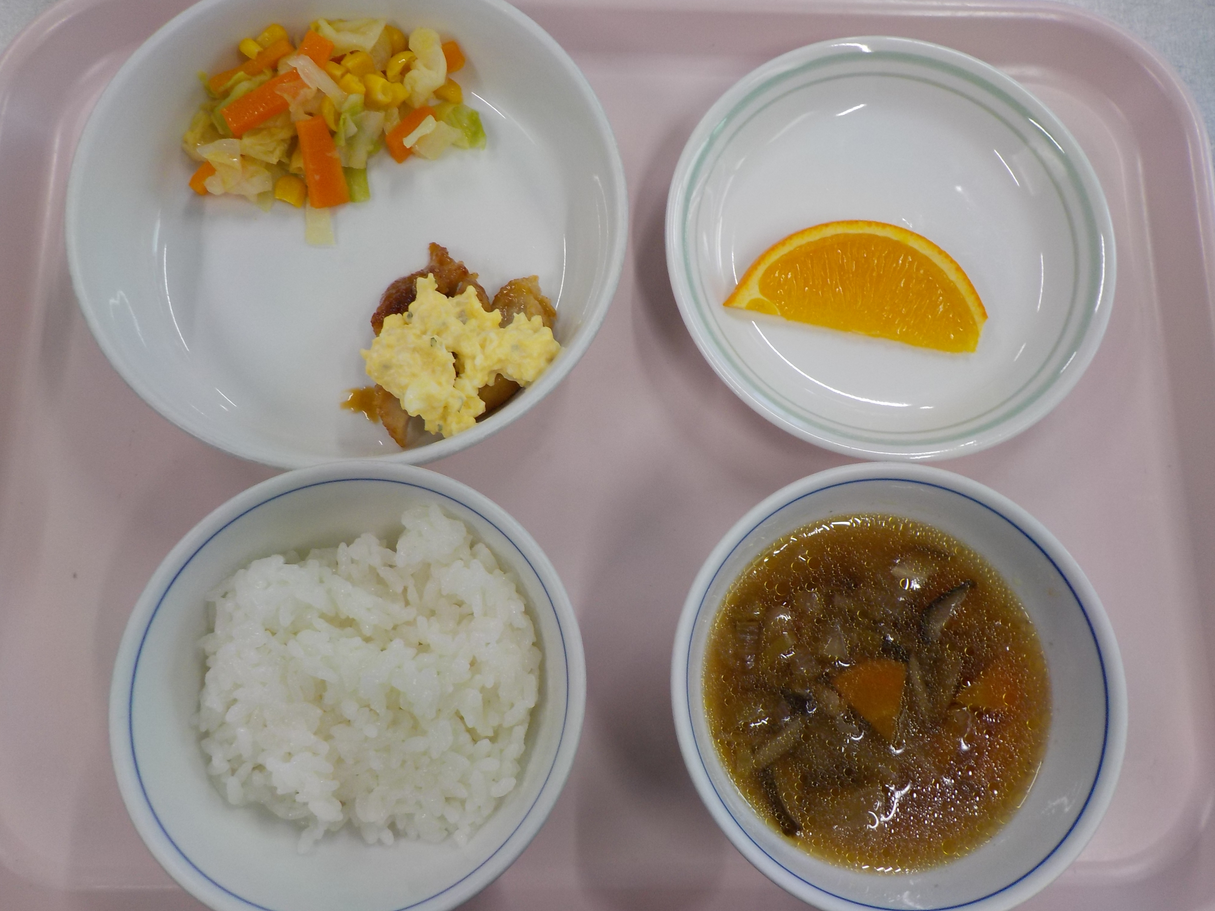 ・ご飯・チキン南蛮・キャベツソテー・ざぶ汁・オレンジ