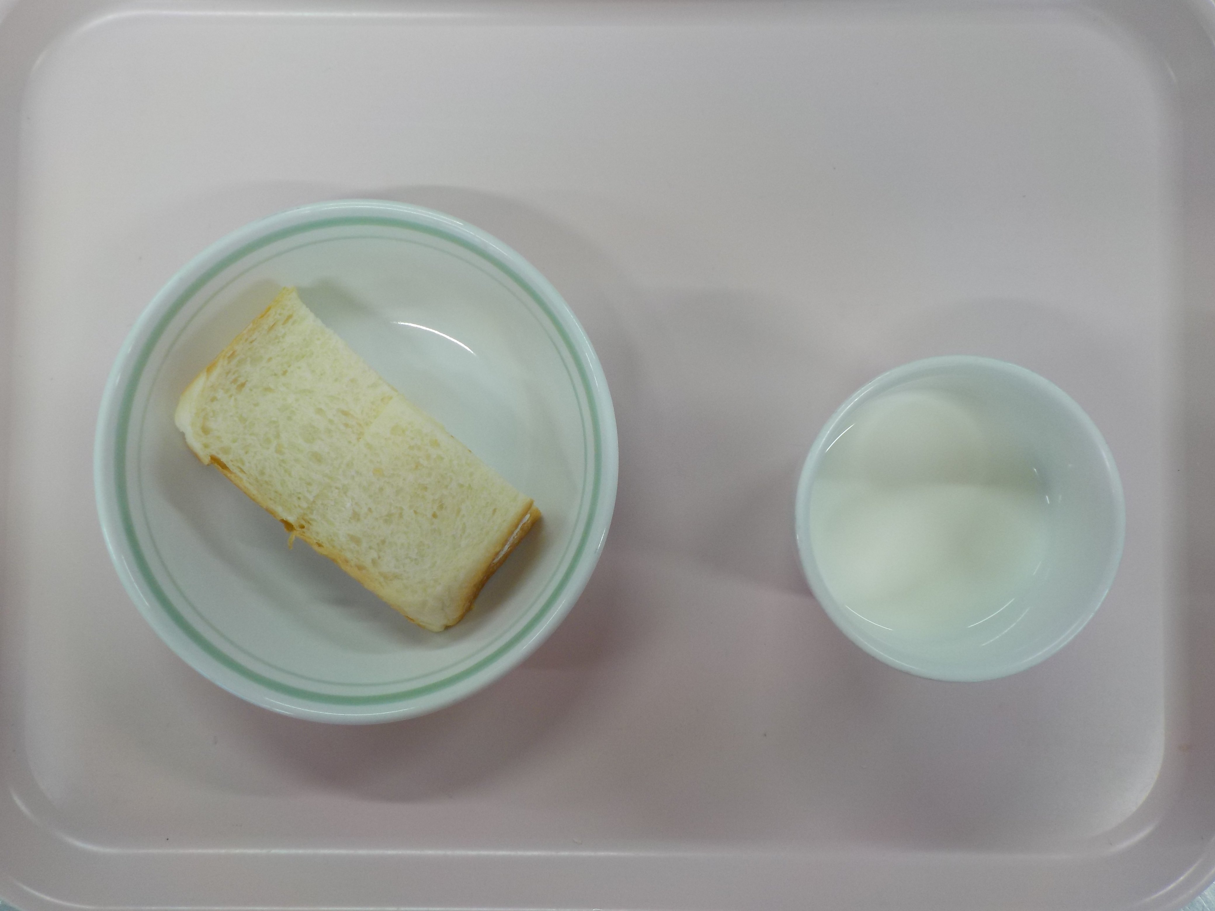 2歳児・ご飯・松風焼き・磯辺和え・すまし汁・バナナ・フルーツサンド・牛乳