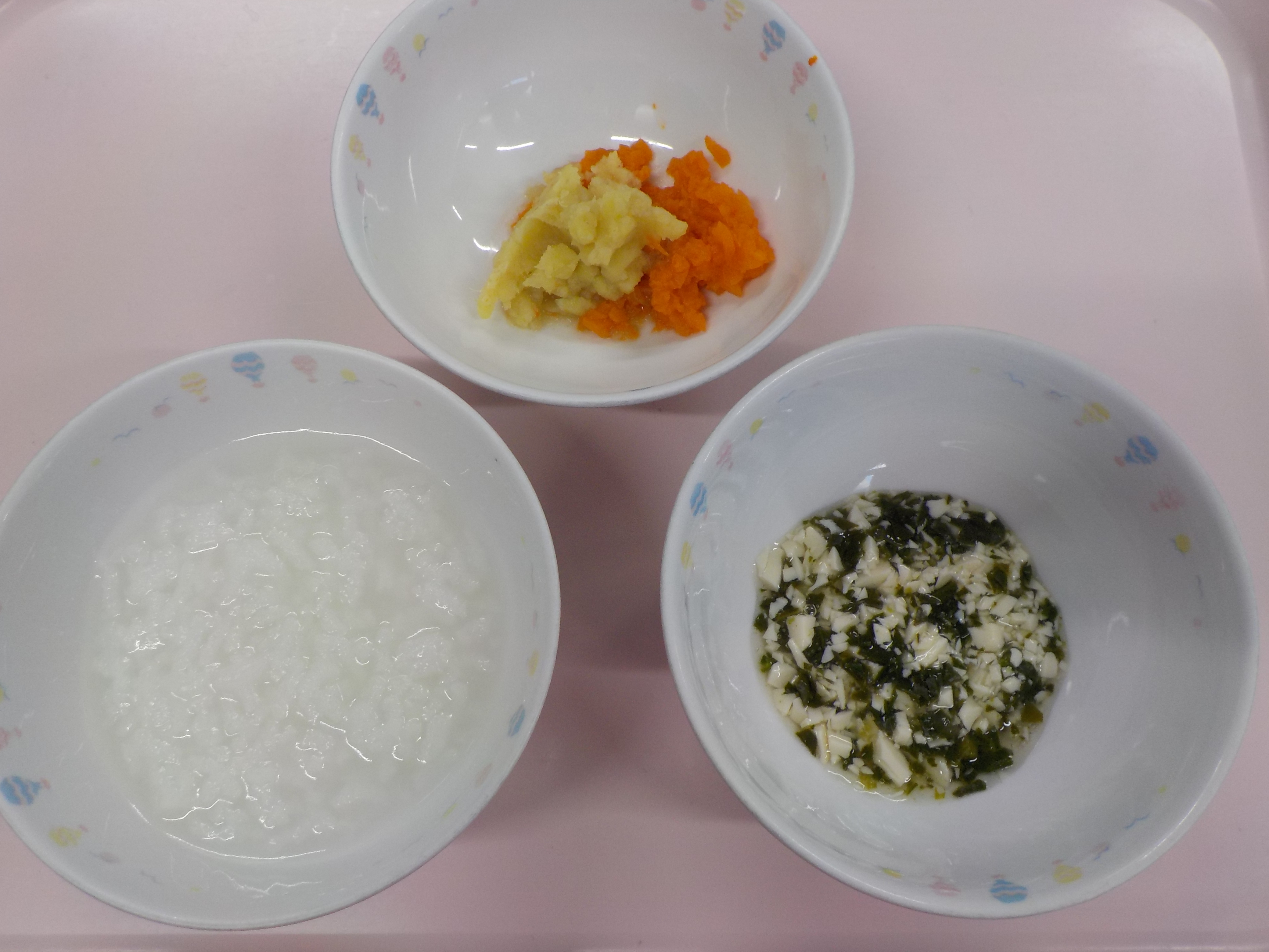 ・おかゆ・豆腐とほうれん草煮・人参とさつま芋煮