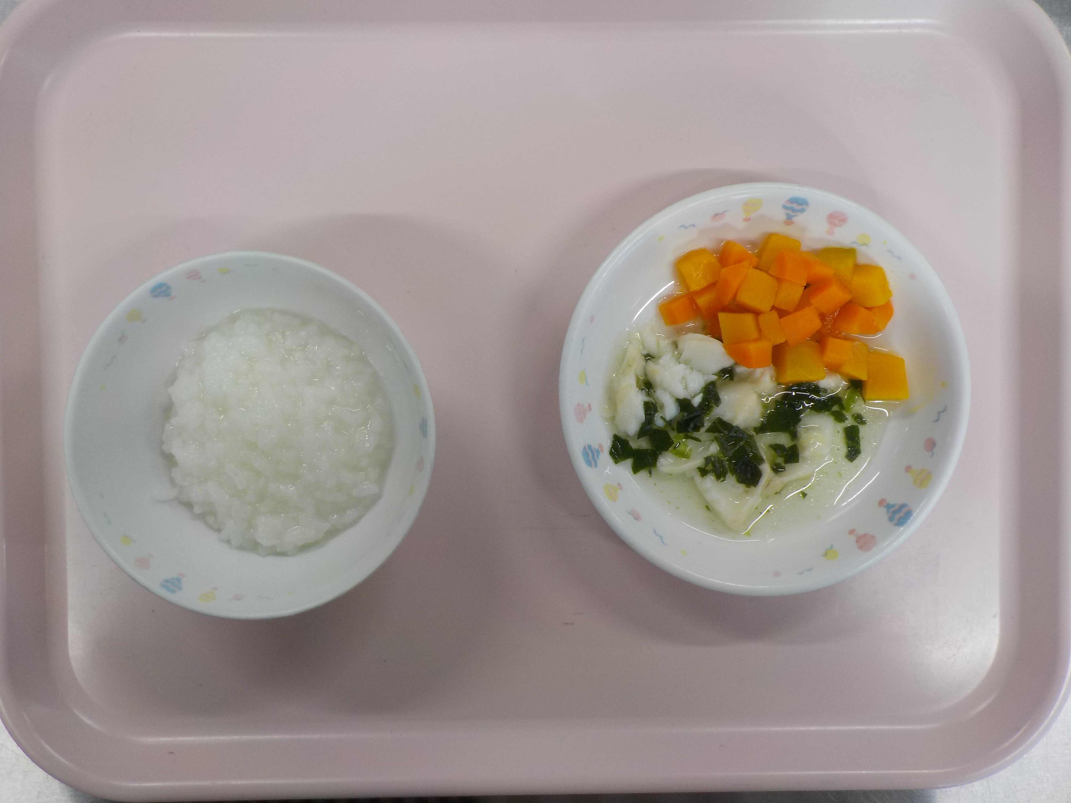 ・おかゆ・白身魚とほうれん草煮・人参と南瓜煮
