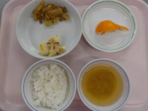 ・ご飯・魚の塩麴焼き・じゃが芋のきんぴら・味噌汁・みかん