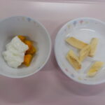 ・ご飯・白身魚とキャベツ煮・人参と玉ねぎ煮・白菜のスープ・りんご煮