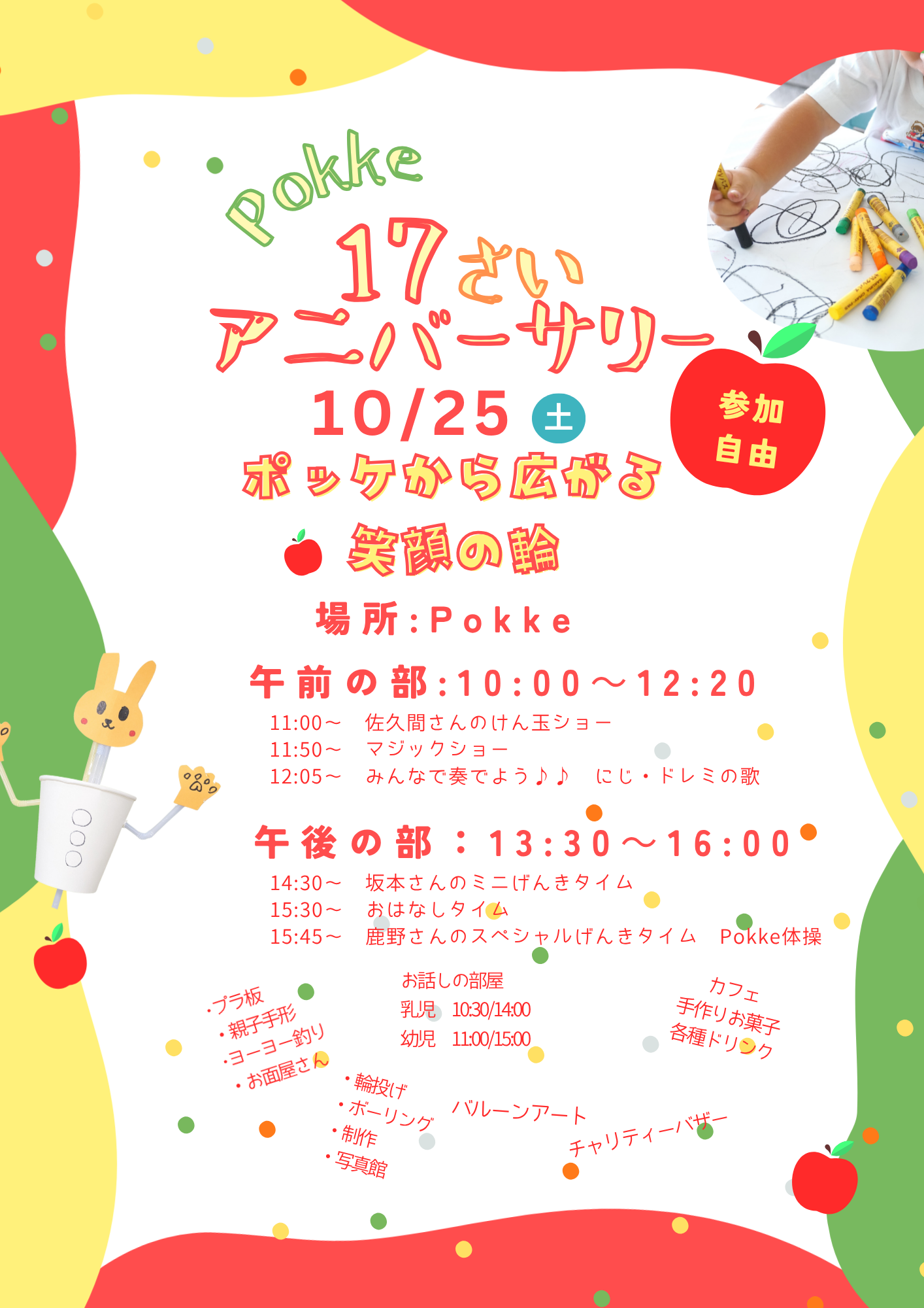お天気が若干不安ではありますが、たくさんの皆さんと一緒にpokkeの17歳をお祝いしたいと思います。