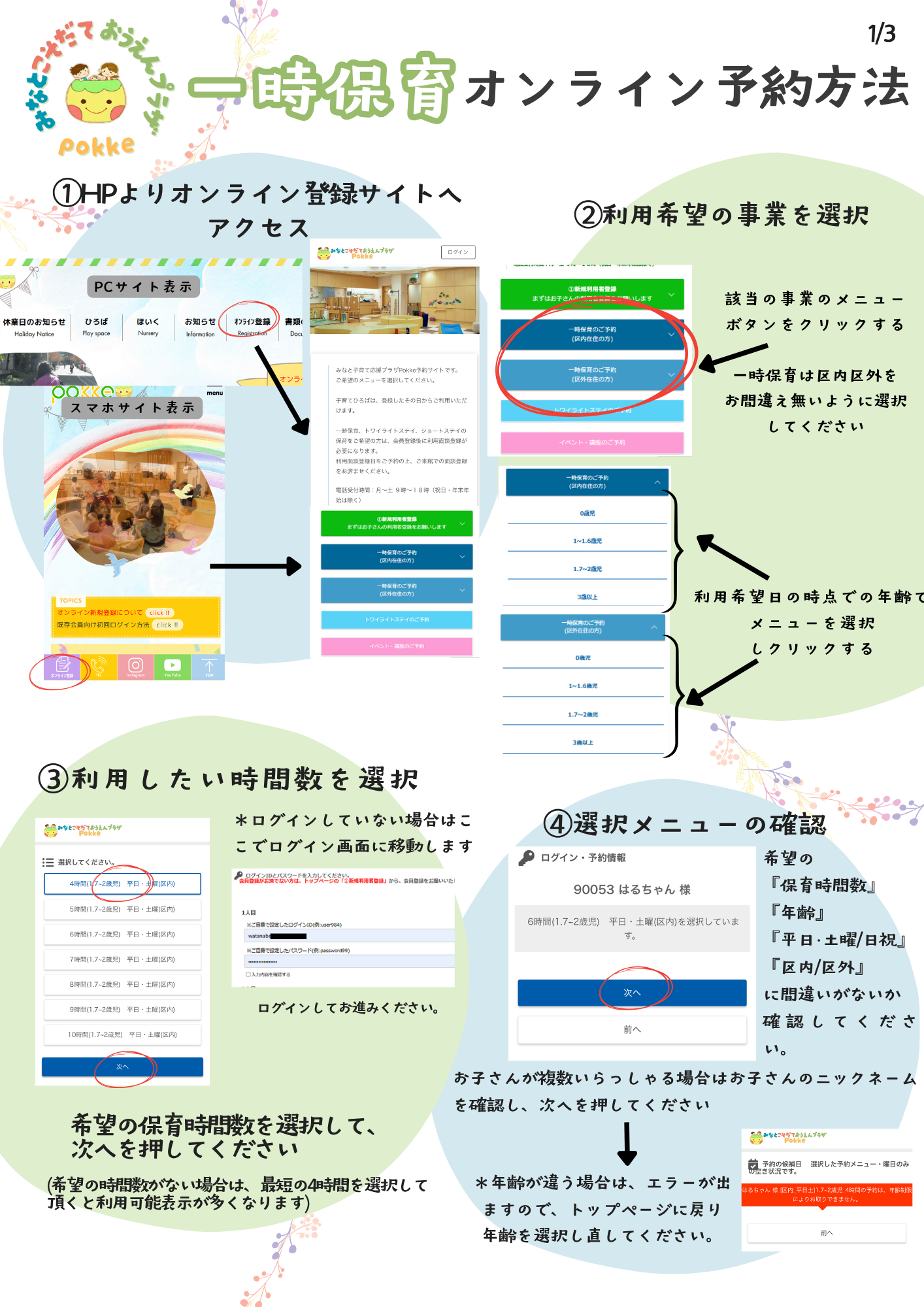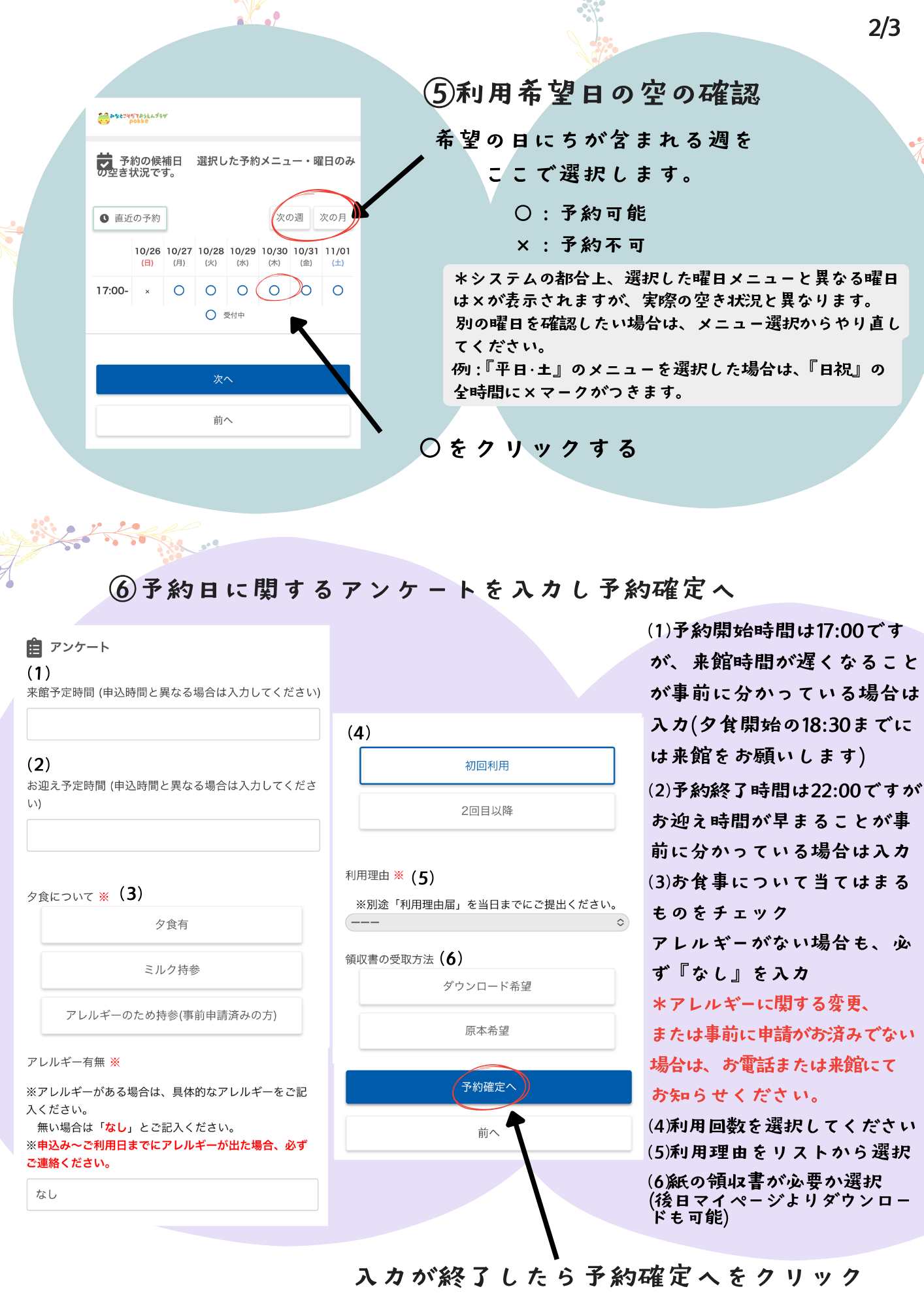 *現在保育をご利用頂いている方は、現在の会員番号を引き継いでオンライン予約がご利用いただけます。