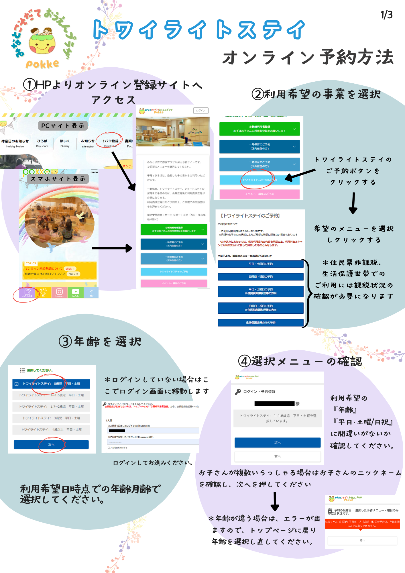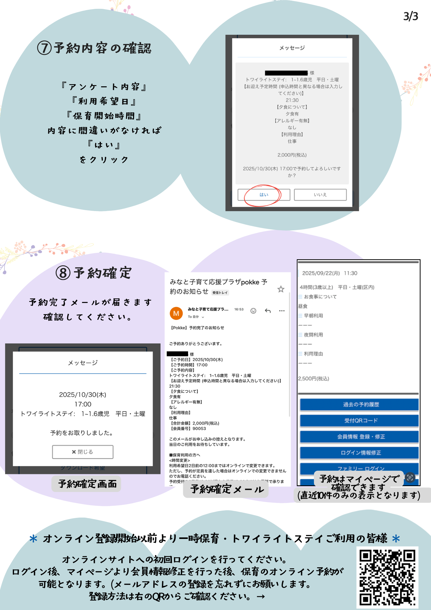 *11月以降に一時保育・トワイライトステイのオンライン申込みが開始となりますので、現在保育をご利用中の皆様は10月中オンラインサイトへの切り替え作業を行ってください。詳しい方法はこちら
