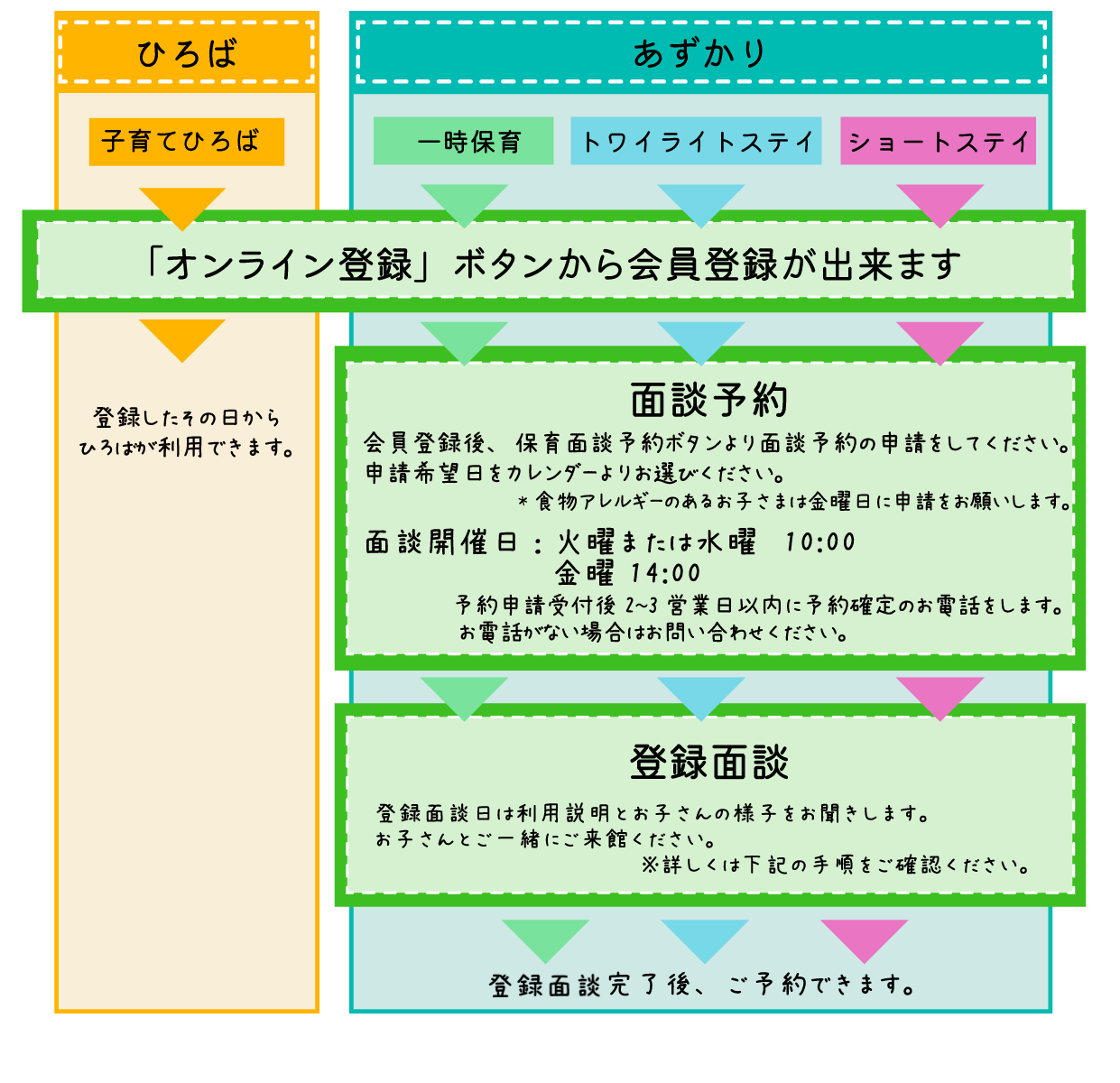 オンライン登録サイトの『保育面談予約』ボタンより申請してください。